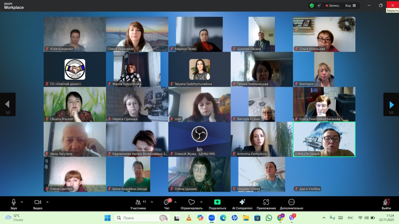 Підвищення юридичної відповідальності та необхідність створення безпечного психологічного середовища в колективі – виклик, який вимагає від керівників нових знань, інструментів і підходів. Саме тому наш вебінар став платформою для змістовної дискусії, практичних порад та професійної підтримки керівників і педагогічних працівників мистецьких шкіл з різних регіонів України.
